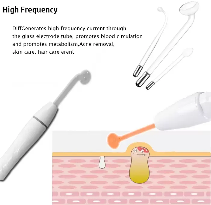 High-Frequency Probe: Treats acne, reduces inflammation, and promotes circulation for a revitalized skin appearance.